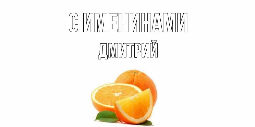 Открытка С именинами Дмитрий. мандарин нарезан на дольки с зеленым листом. мандарин