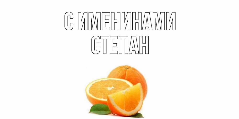 Открытка С именинами Степан. мандарин нарезан на дольки с зеленым листом. мандарин