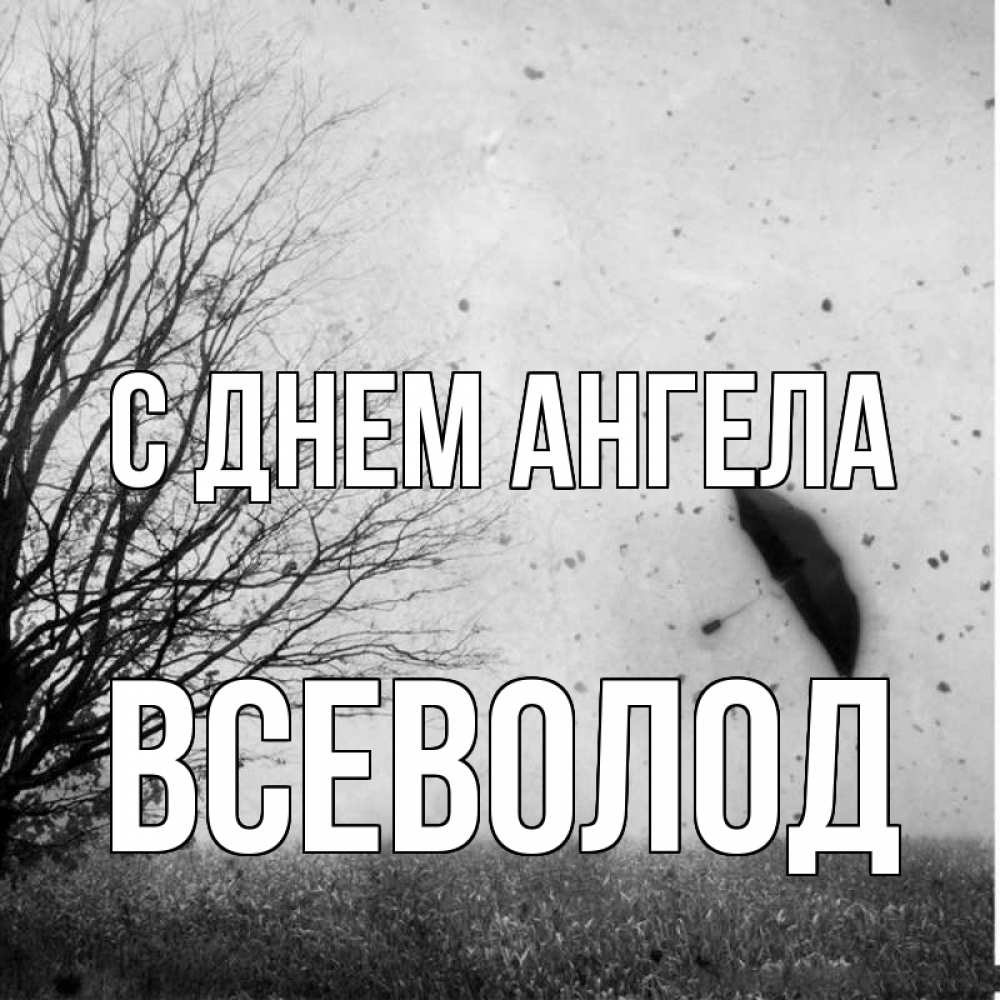 Открытка С днем Ангела Всеволод. ветер. зонт летит