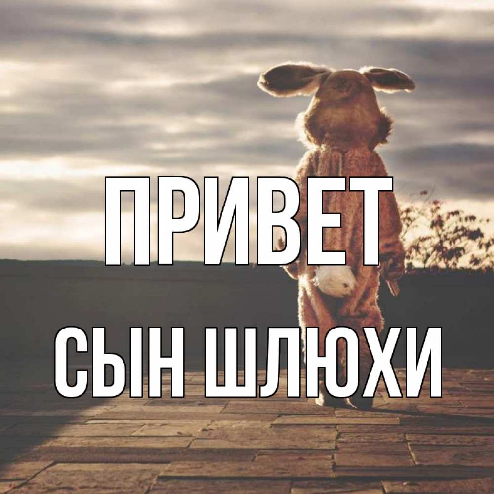Открытка Привет Сын шлюхи. жду в любом виде. даже в костюме зайца