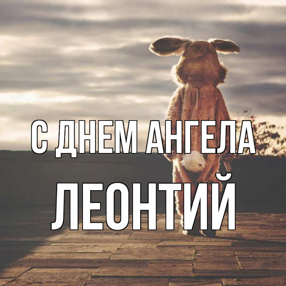Открытка С днем Ангела Леонтий. жду в любом виде. даже в костюме зайца