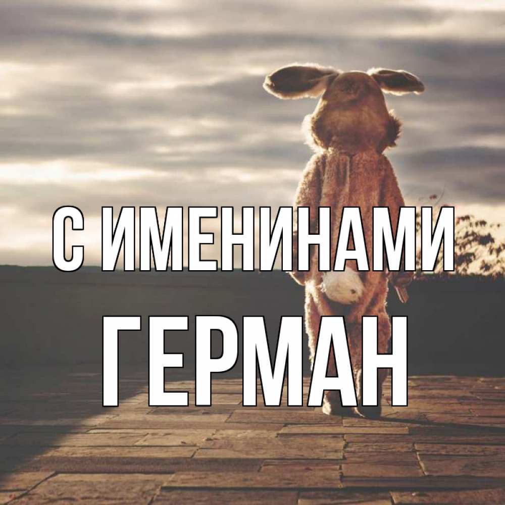 Открытка С именинами Герман. жду в любом виде. даже в костюме зайца