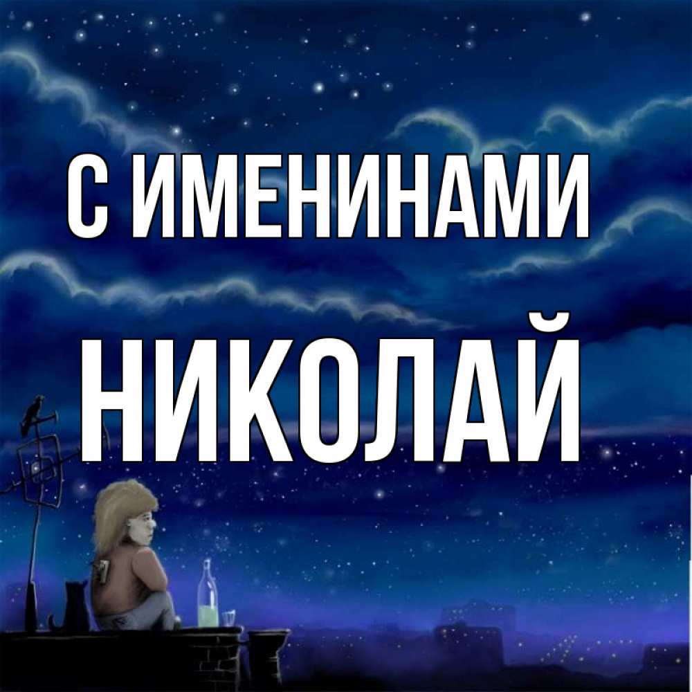 Открытка С именинами Николай. скучаю 1. на крыше 1