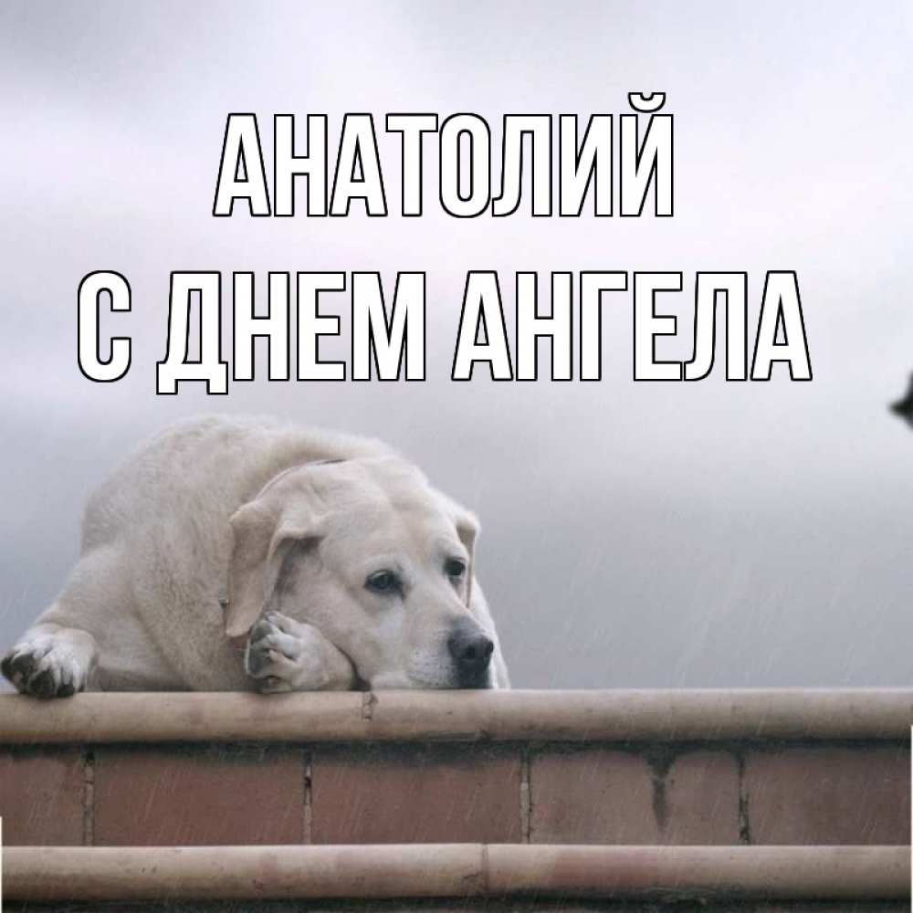 Открытка Анатолий С днем ангела. пес скучает. ждет