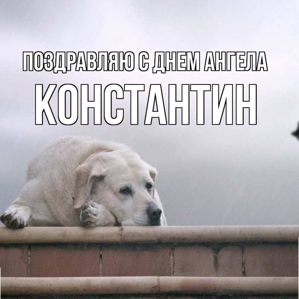 Открытка Поздравляю с днем Ангела Константин. пес скучает. ждет