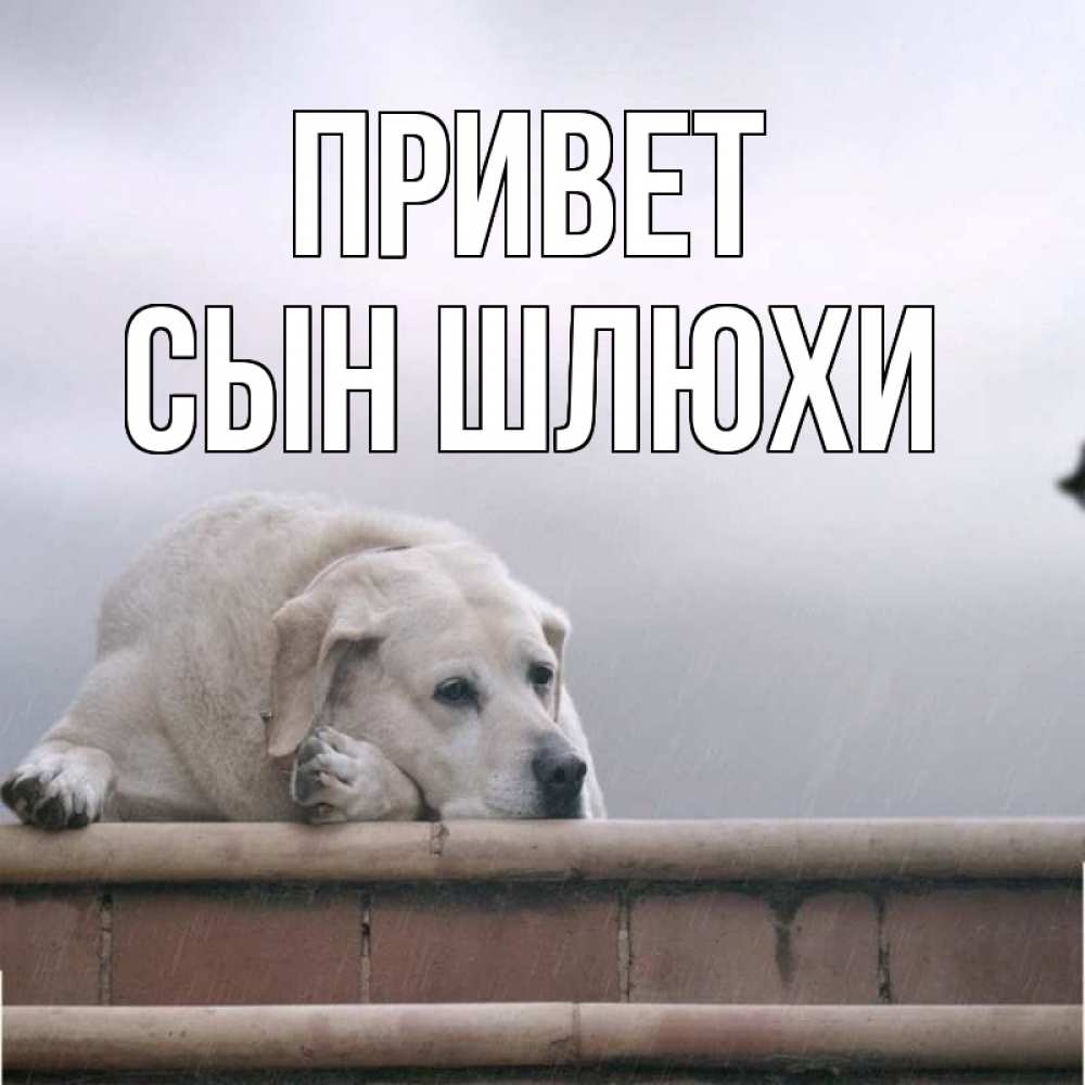 Открытка Привет Сын шлюхи. пес скучает. ждет