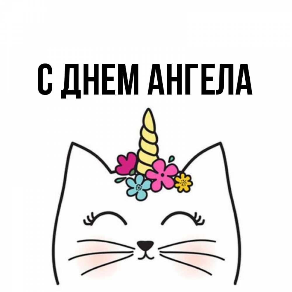 Открытка С днем ангела. Котик с рогом. милый кот с одним рожком С днем рождения