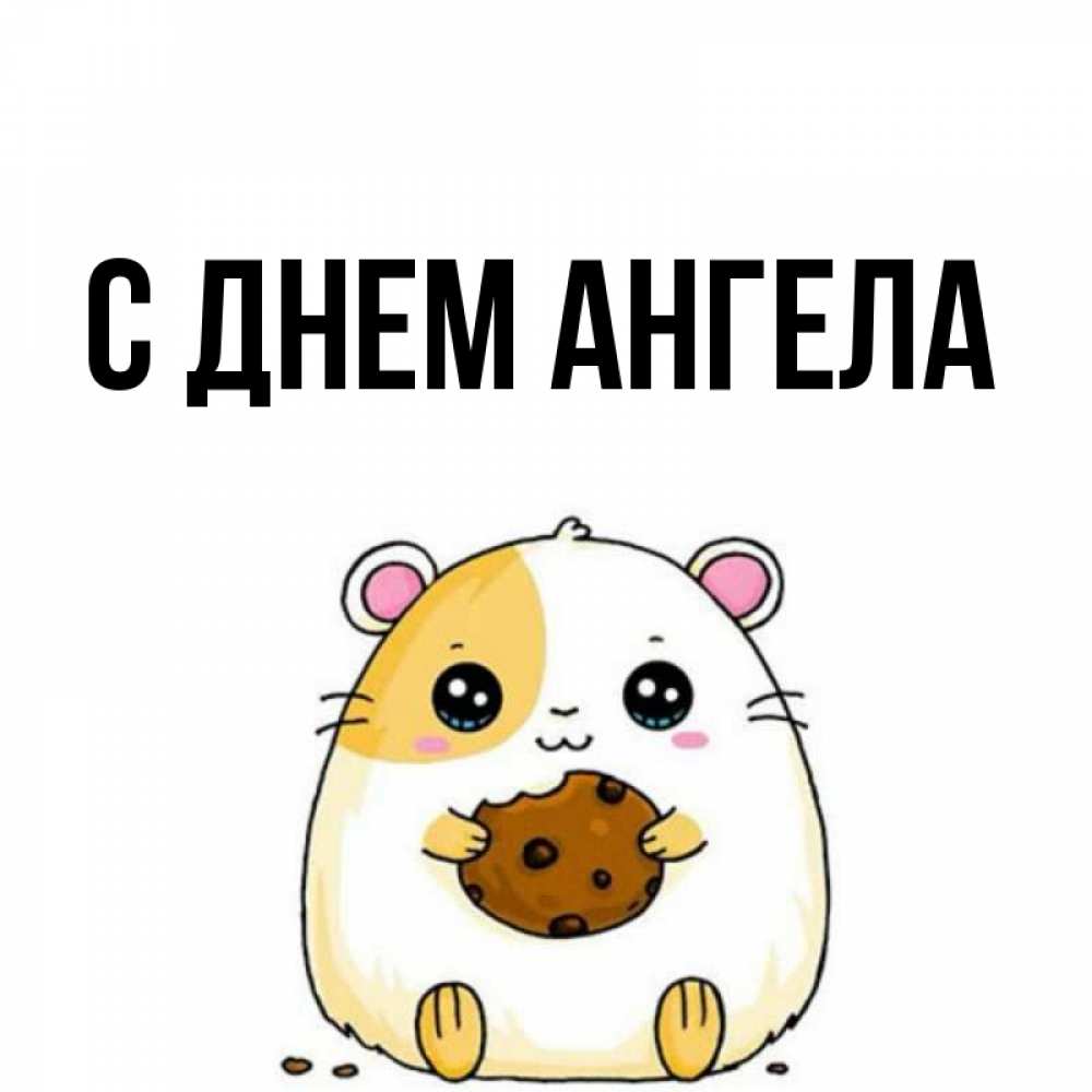 Открытка С днем ангела. Хомяк жрет печеньку. с днюхой С днем рождения