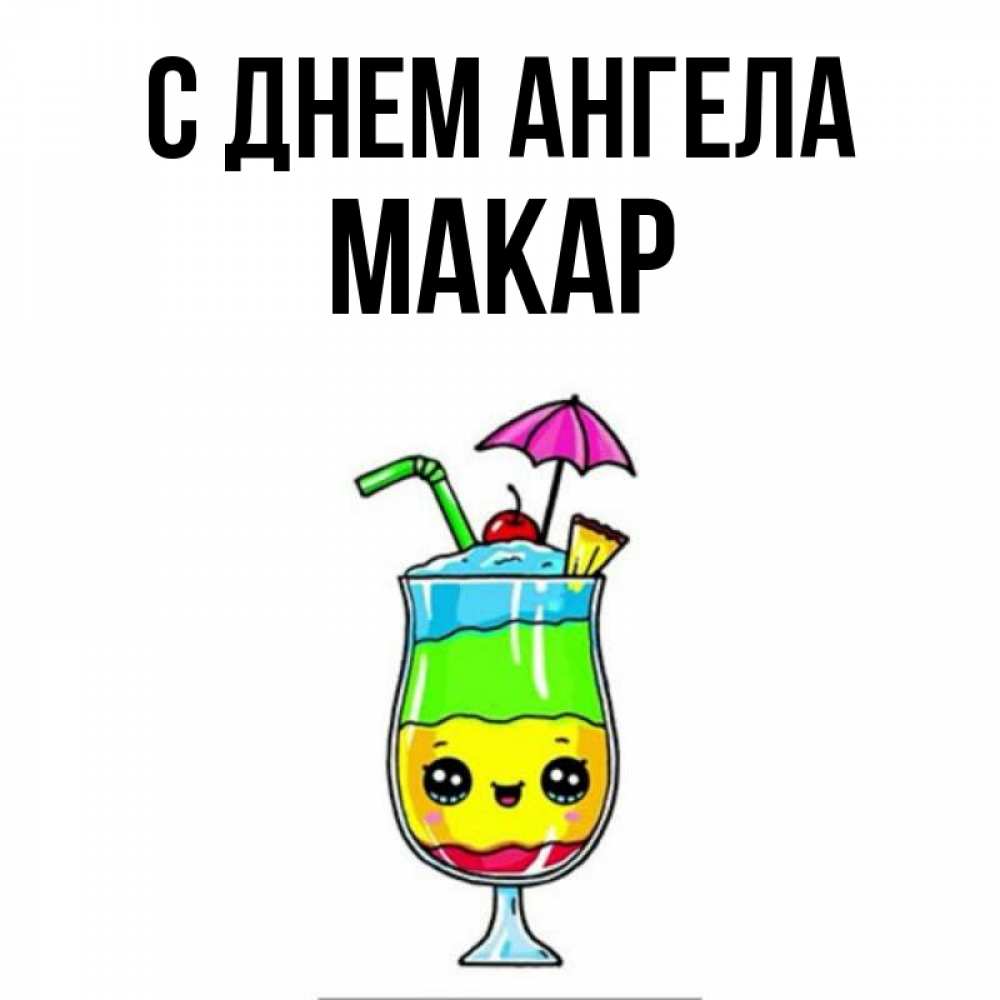 Открытка С днем Ангела Макар. радужный коктейл. с зонтиком