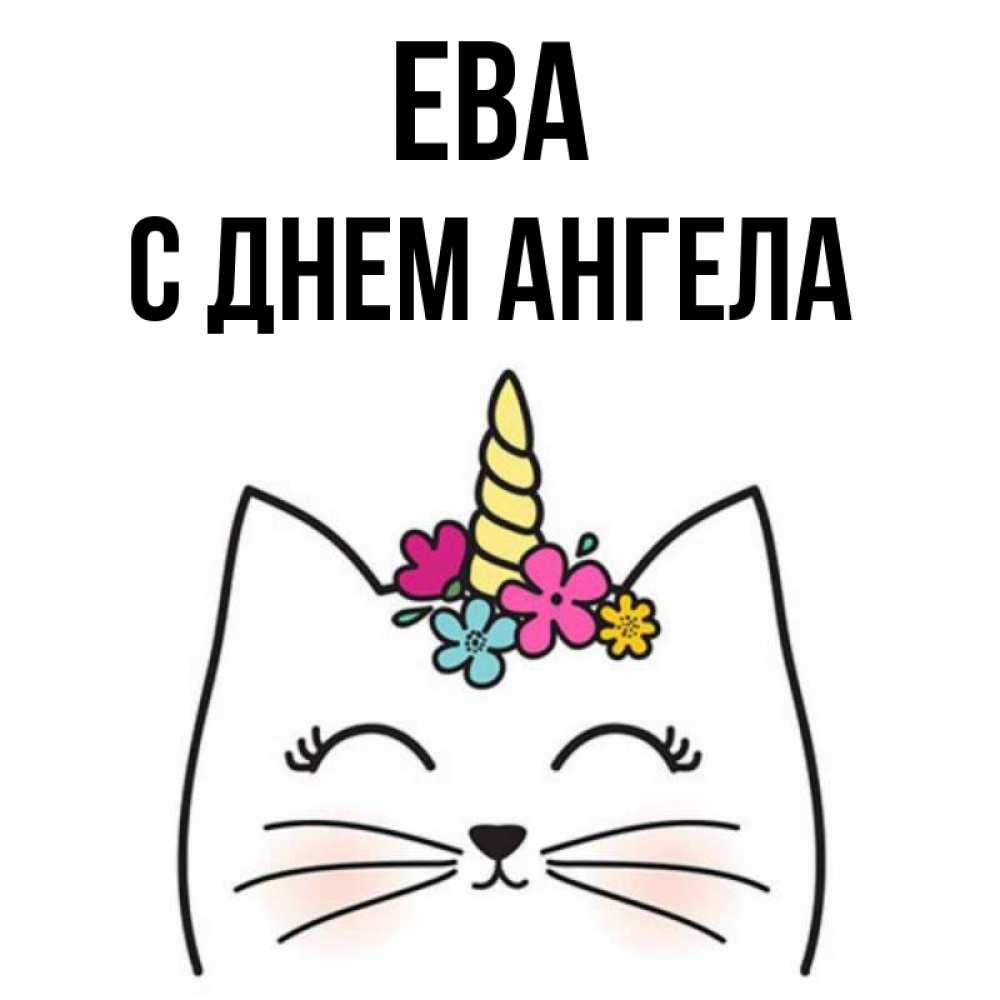 Открытка Ева С днем ангела. Кот проснулся. утречко