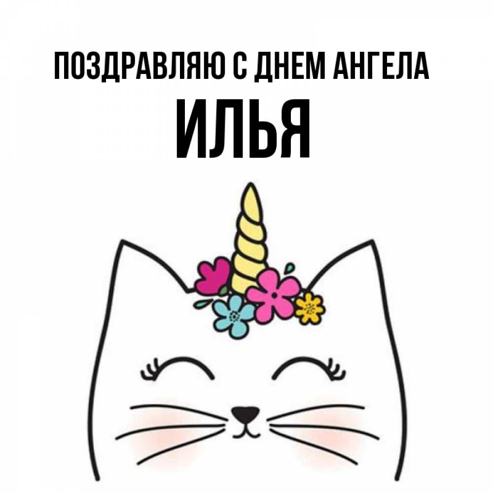 Открытка Поздравляю с днем Ангела Илья. Кот проснулся. утречко