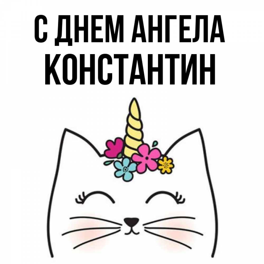 Открытка С днем Ангела Константин. Кот проснулся. утречко