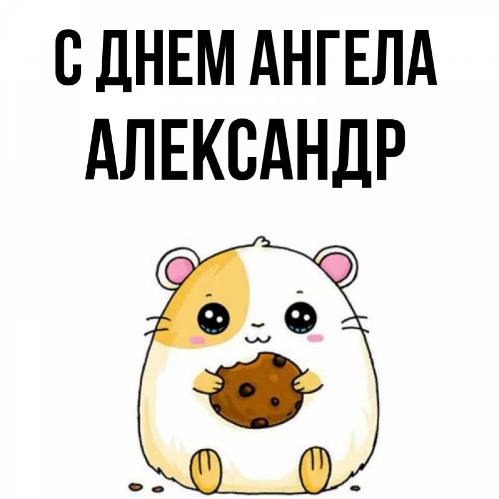 Открытка С днем Ангела Александр. хома проснулась. есть печеньку. Утречко