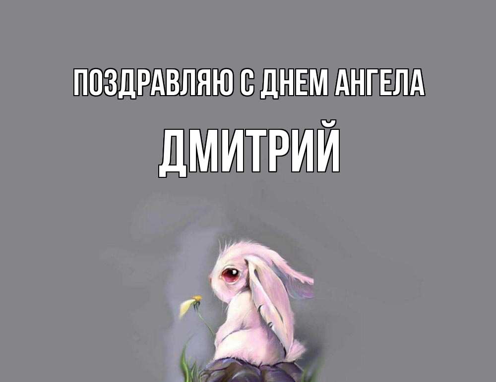 Открытка Поздравляю с днем Ангела Дмитрий. Зайчик скучает. заяц