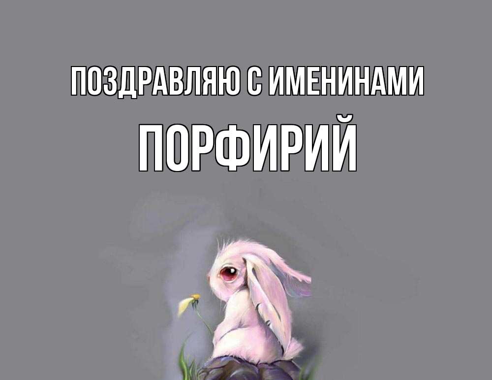 Открытка Поздравляю с именинами Порфирий. Зайчик скучает. заяц