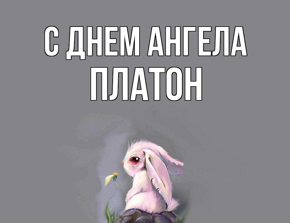 Открытка С днем Ангела Платон. Зайчик скучает. заяц