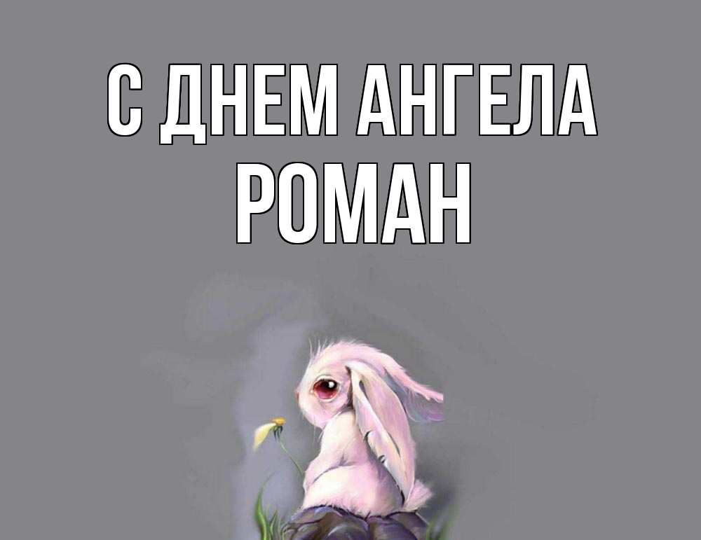 Открытка С днем Ангела Роман. Зайчик скучает. заяц