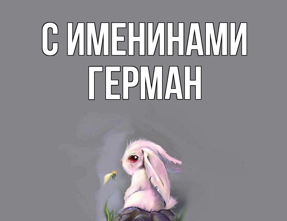 Открытка С именинами Герман. Зайчик скучает. заяц