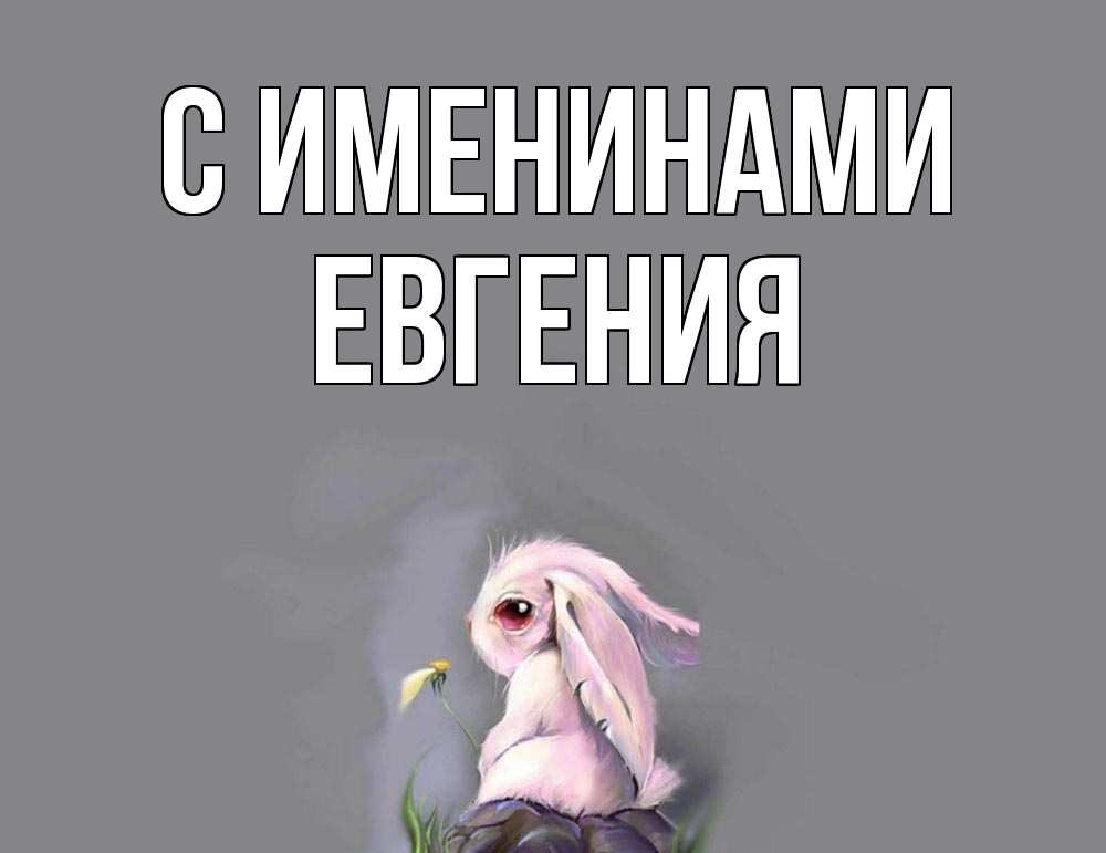 Открытка С именинами Евгения. Зайчик скучает. заяц