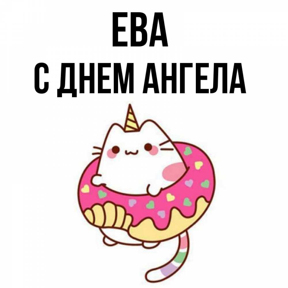 Открытка Ева С днем ангела. утречко. кот в бублике