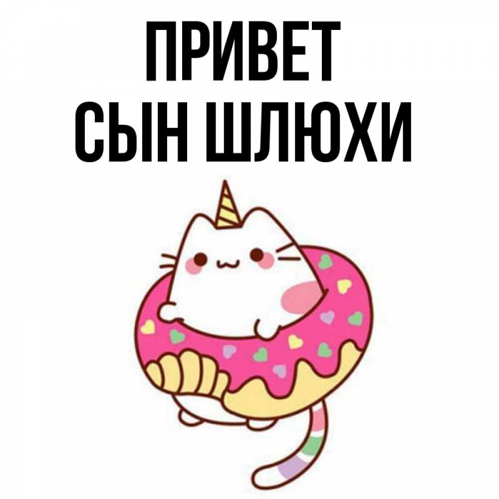 Открытка Привет Сын шлюхи. утречко. кот в бублике