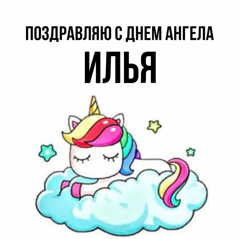 Открытка Поздравляю с днем Ангела Илья. принцесса пони проснулась на облаке. радужное утро