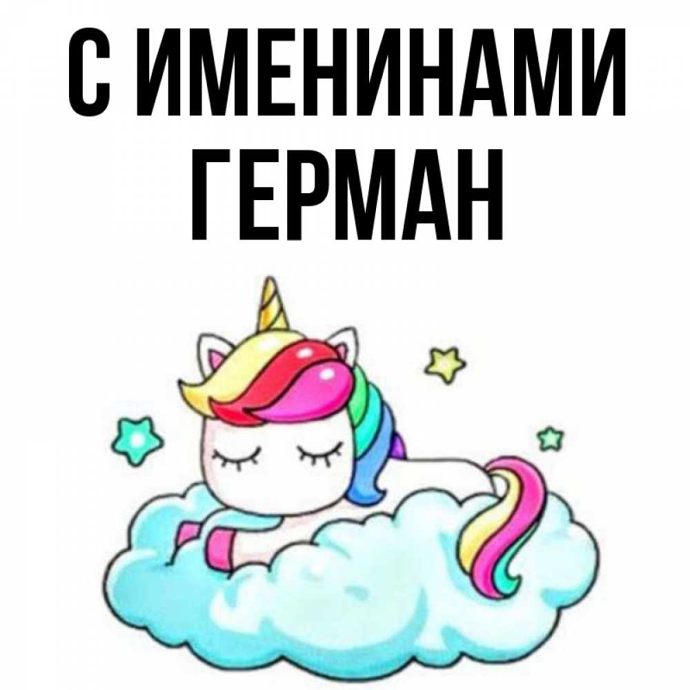 Открытка С именинами Герман. принцесса пони проснулась на облаке. радужное утро