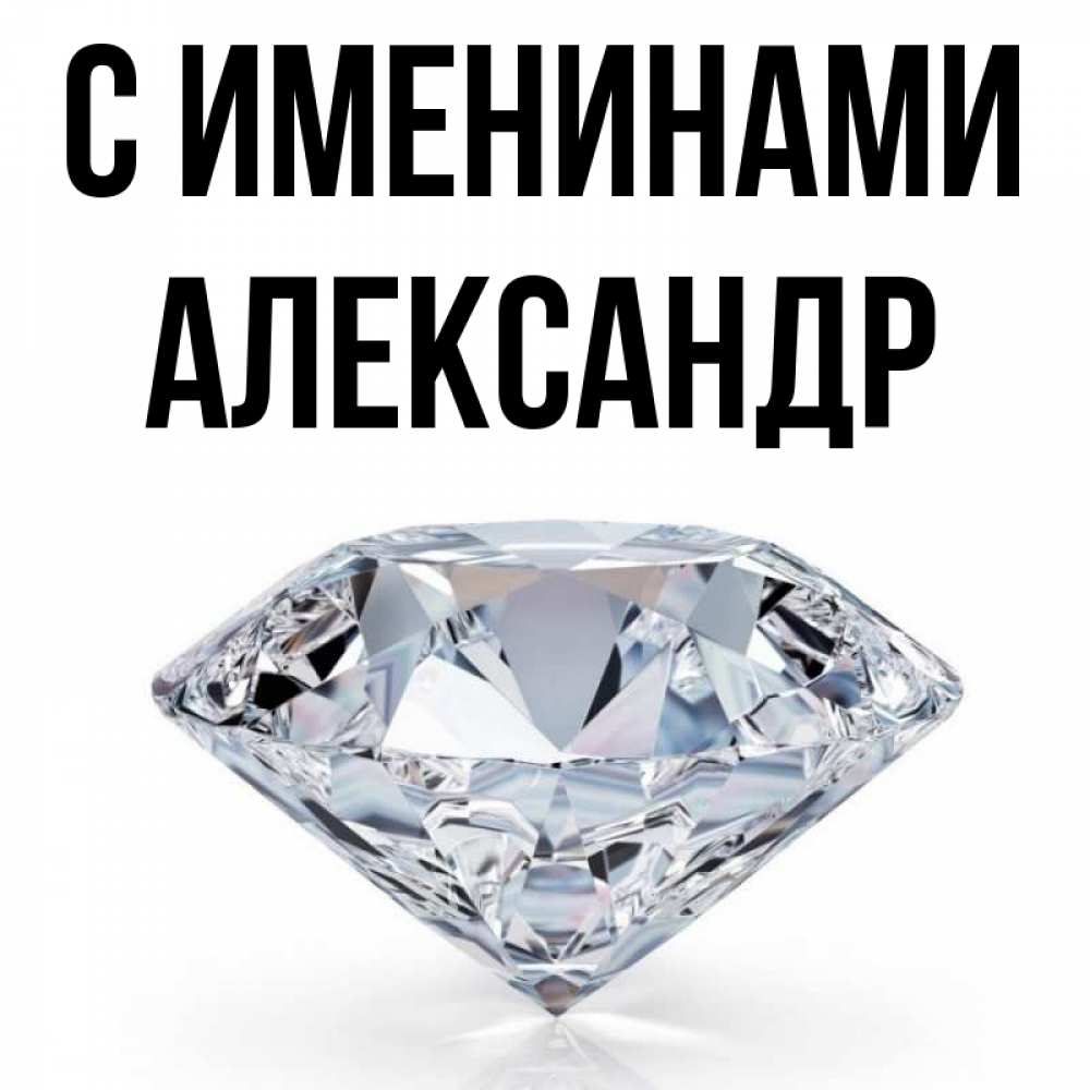 Открытка С именинами Александр. С огромным бриллиантом. к пожеланием быть богатым