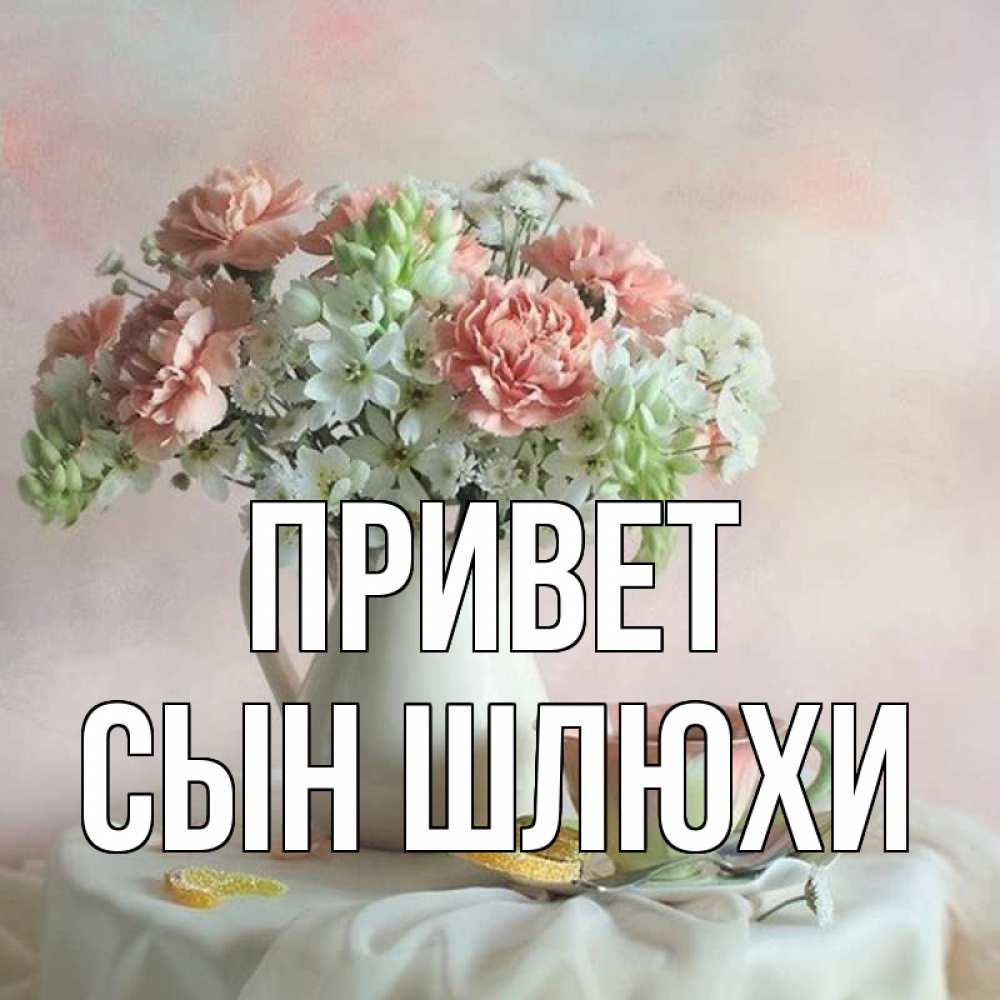Открытка Привет Сын шлюхи. цветы и ваза. с цветами