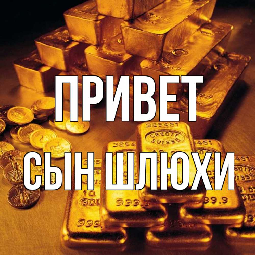 Открытка Привет Сын шлюхи. с золотом . со слитками золота и золотыми монетами