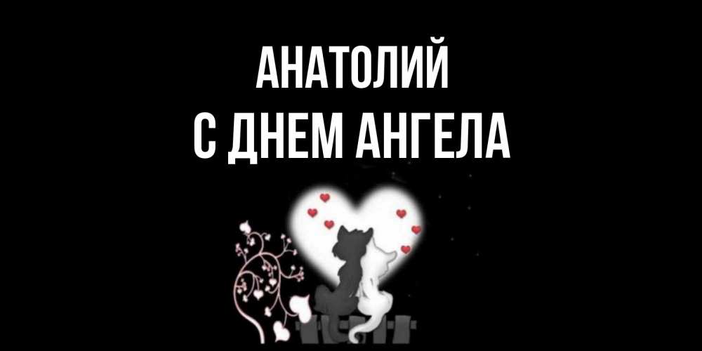 Открытка Анатолий С днем ангела. Коты и сердце. коты