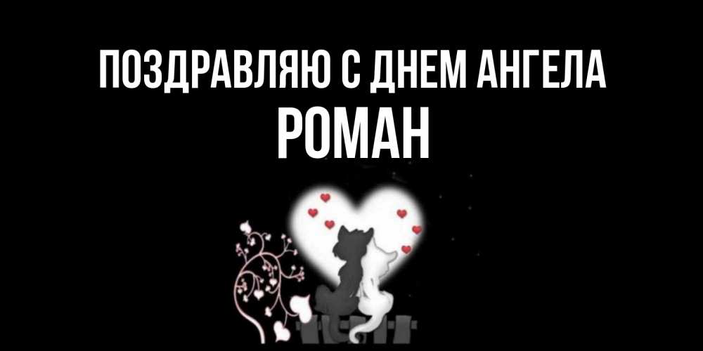 Открытка Поздравляю с днем Ангела Роман. Коты и сердце. коты