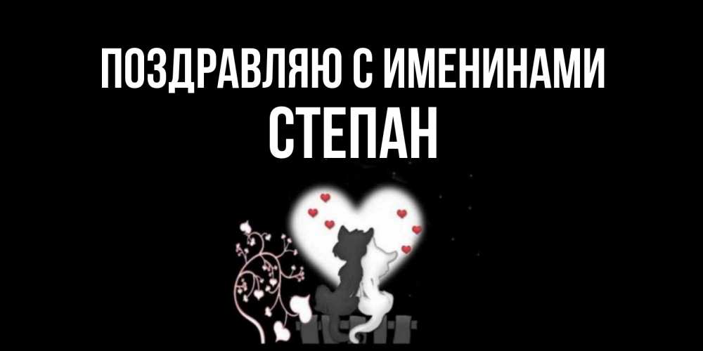 Открытка Поздравляю с именинами Степан. Коты и сердце. коты