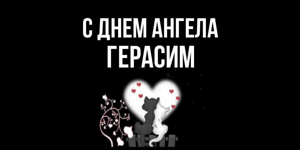 Открытка С днем Ангела Герасим. Коты и сердце. коты
