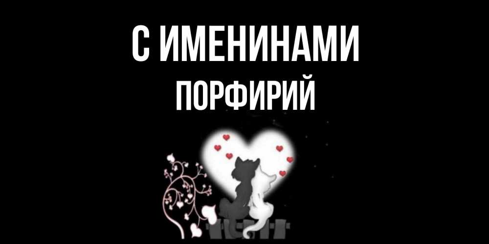 Открытка С именинами Порфирий. Коты и сердце. коты