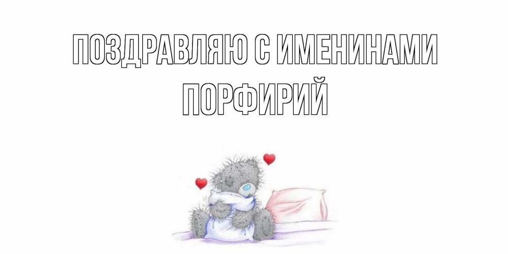 Открытка Поздравляю с именинами Порфирий. мишка обнимает подушку. мишка