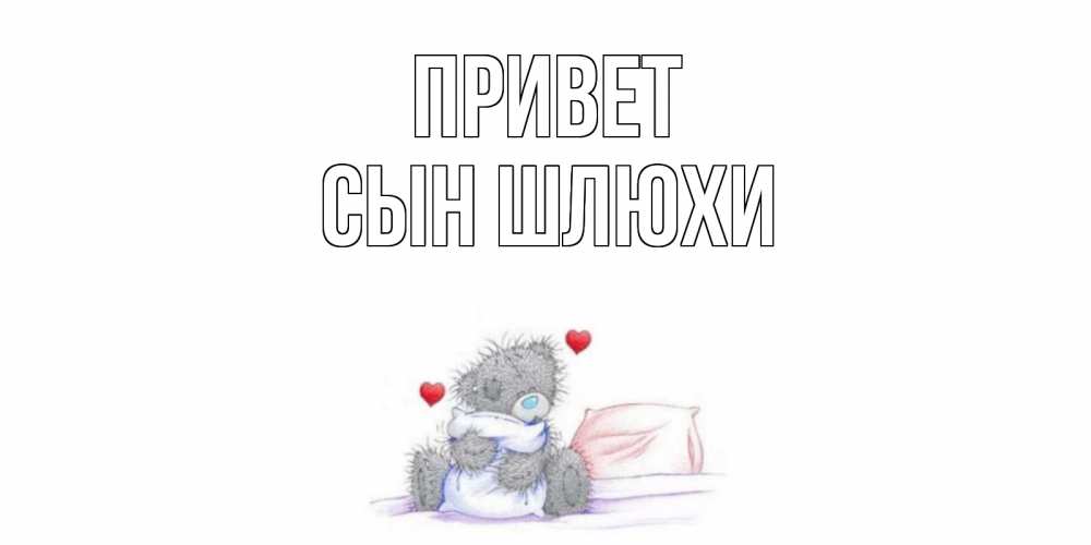 Открытка Привет Сын шлюхи. мишка обнимает подушку. мишка
