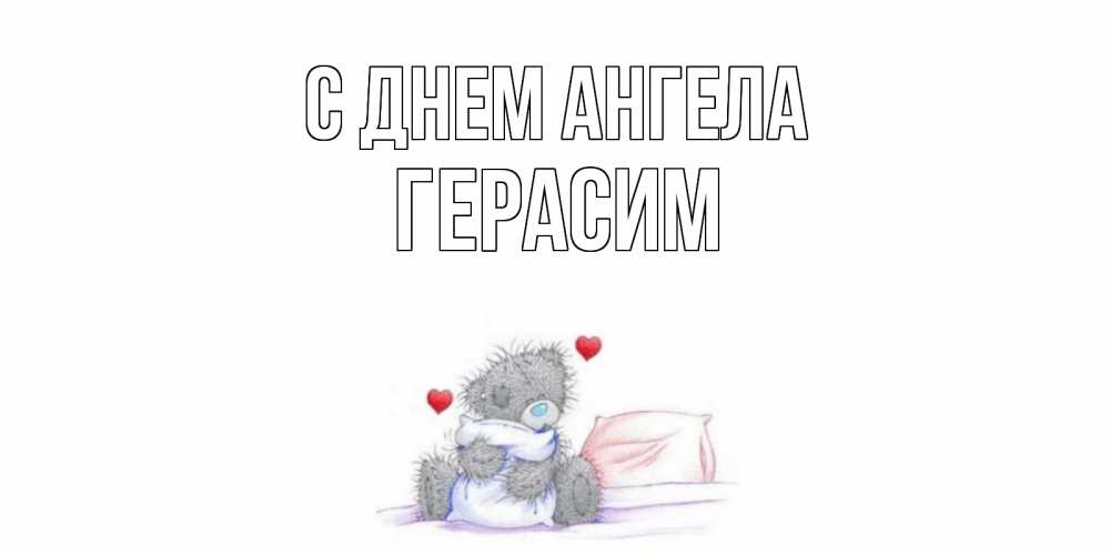 Открытка С днем Ангела Герасим. мишка обнимает подушку. мишка
