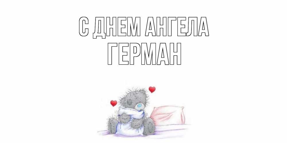 Открытка С днем Ангела Герман. мишка обнимает подушку. мишка