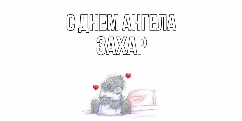 Открытка С днем Ангела Захар. мишка обнимает подушку. мишка