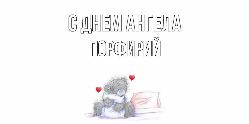 Открытка С днем Ангела Порфирий. мишка обнимает подушку. мишка