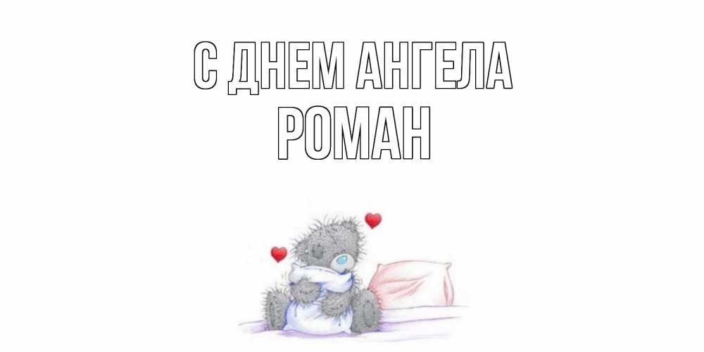 Открытка С днем Ангела Роман. мишка обнимает подушку. мишка