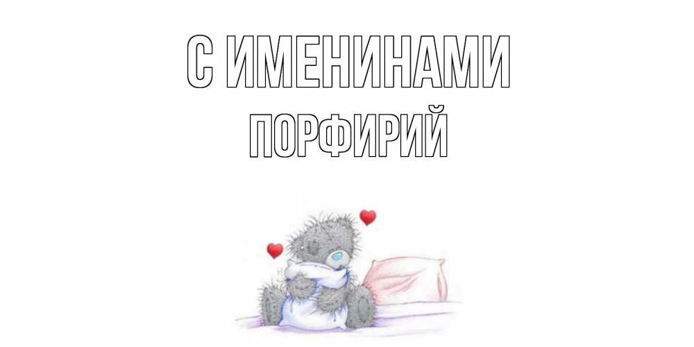 Открытка С именинами Порфирий. мишка обнимает подушку. мишка