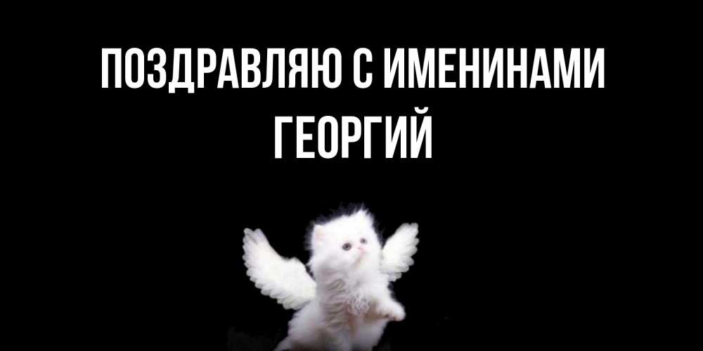 Открытка Поздравляю с именинами Георгий. Кот ангел. Кот ангел