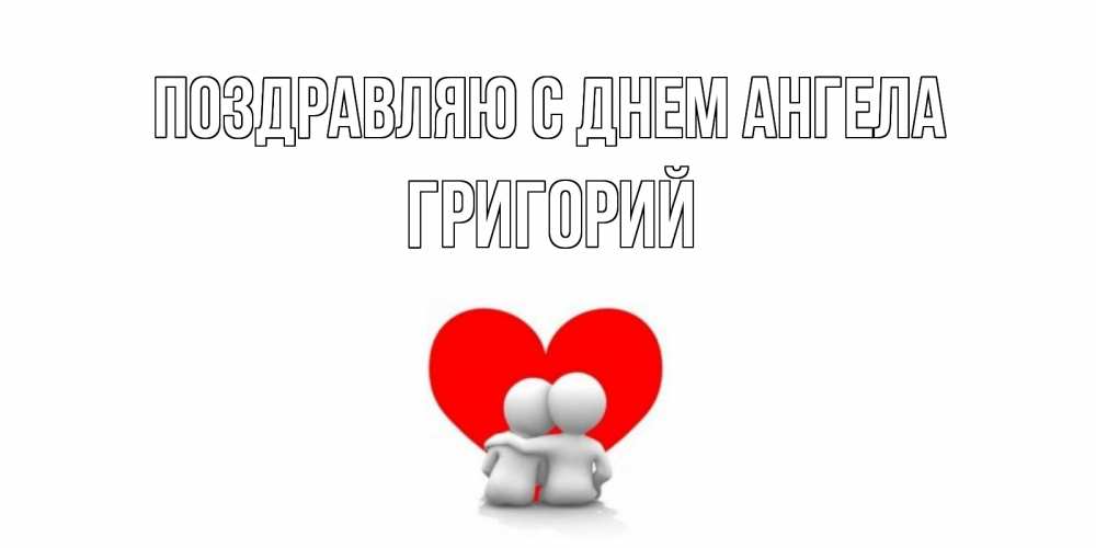 Открытка Поздравляю с днем Ангела Григорий. обнимашки на фоне сердца. обнимаю