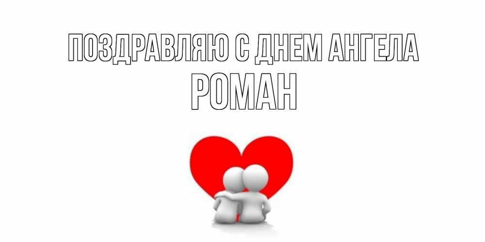 Открытка Поздравляю с днем Ангела Роман. обнимашки на фоне сердца. обнимаю