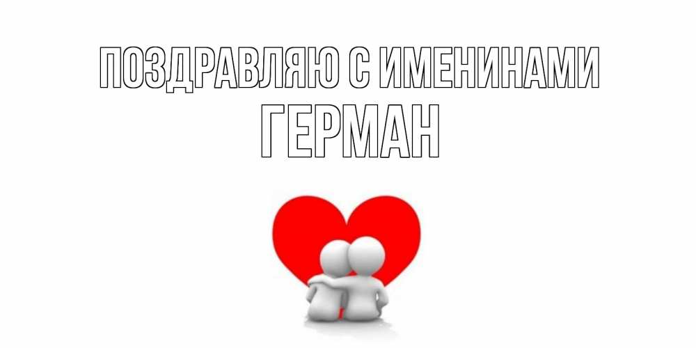 Открытка Поздравляю с именинами Герман. обнимашки на фоне сердца. обнимаю