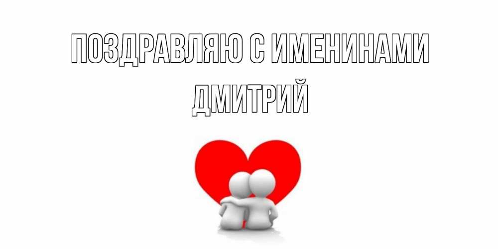 Открытка Поздравляю с именинами Дмитрий. обнимашки на фоне сердца. обнимаю