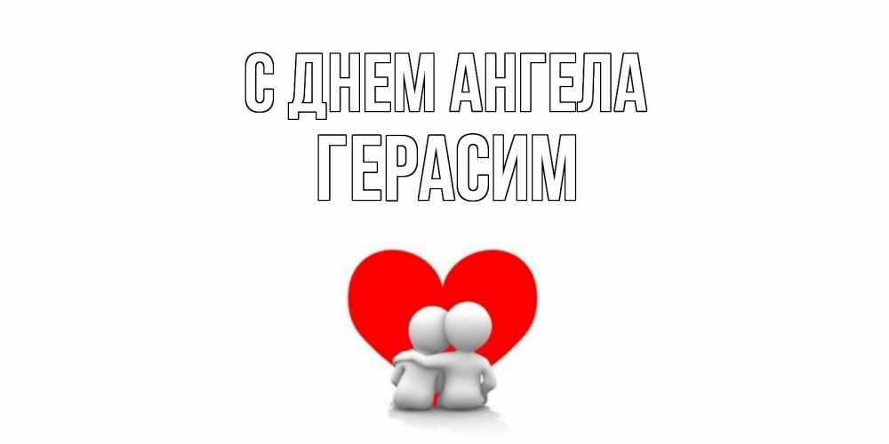 Открытка С днем Ангела Герасим. обнимашки на фоне сердца. обнимаю