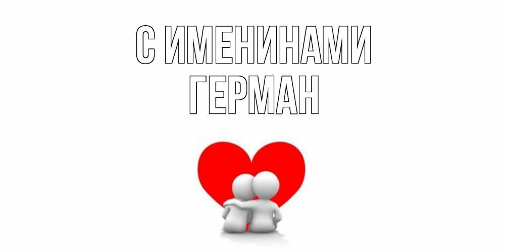 Открытка С именинами Герман. обнимашки на фоне сердца. обнимаю
